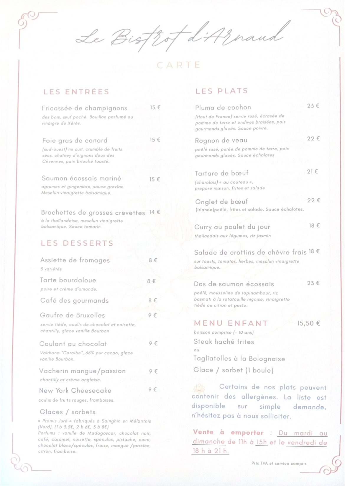 APPELER +33320353917LE BISTROT D'ARNAUD
